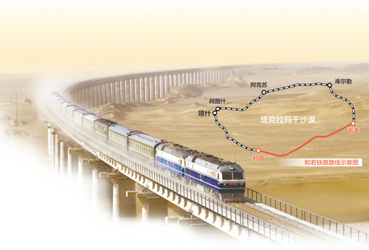 3月11日,动检列车通过和若铁路若克雅特大桥。 文智泉摄(人民视觉) 图表来源:中铁第一勘察设计院集团有限公司核心阅读经3年多奋战,和若铁路通车,世界首个沙漠铁路环线形成。这条国家重点铁路建设项目,结束了南疆洛浦、策勒、于田、民丰、且末等地不通火车的历史,极大便利了沿线各族人民群众出行和货物运输,将带动南疆经济发展,助力乡村振兴。6月16日10时53分,5818列车从新疆和田站缓缓驶出,朝着目的地疾驰而去。这标志着和若铁路(和田市至若羌县)正式通车运营。作为国家重点铁路建设项目,和若铁路西起新疆和田地区和田市,东至巴音郭楞蒙古自治州若羌县,全长825公里,设计时速120公里。和若铁路开通后,与南疆铁路、格库铁路相连,全长2712公里,形成世界首个沙漠铁路环线。绿色之路——“沙漠修铁路,治沙要先行”在首趟列车的一节车厢里,记者遇到一群特殊的乘客——和若铁路建设者的代表们。自2018年12月开工建设以来,和若铁路的两万多名建设者,在高温、风沙、严寒等极端天气的考验下,奋战了3年多的时间。“一天二两土,白天不够晚上补。”当被问及施工期间最深刻的感受,他们这样回答。和若铁路是一条典型的沙漠铁路,地处世界第二大流动性沙漠塔克拉玛干沙漠的南缘,有534公里分布在风沙区域,占线路总长的65%。每到风沙季节,风沙会掩埋路基轨道,严重时会影响列车运行安全,对铁路建设和后期运营造成困难。“我们每天要花两个小时清扫沙子,检修设备。”中铁十四局集团有限公司和若铁路铺架标项目负责人张刚说。怎么办?“沙漠修铁路,治沙要先行。”新疆和若铁路有限责任公司党委书记、董事长王尽忠说,“自开工建设以来,我们将风沙防护工程与铁路建设同步进行,这在国内尚属首次。”风沙防护工程不是在铁路沿线种种树那么简单。“针对不同地段,我们采取不同的治沙方案。”中铁第一勘察设计院集团有限公司和若铁路总设计师杨宝荣告诉记者,在风沙特别严重的地段,他们修建过沙桥,让风沙从桥下穿过;在有水源条件的地段,栽植梭梭、沙枣、柽柳、胡杨等植物;在水源匮乏的地段,通过大面积的沙障、草方格来固沙。“在沙漠里种树真难。”王尽忠说,“在植株长大之前,我们先期在外侧设置了1.5米高的立式沙障阻沙,在靠近铁路侧设置芦苇方格固沙,形成挡沙、固沙立体式防沙体系,阻挡风沙上铁道。”3年多来,历经1000多个日夜,建设者们在和若铁路沿线,共修建草方格5000万平方米,种植梭梭、红柳、沙棘等灌木和乔木1300万株,林带覆盖面积超过11万亩,形成防沙护路的绿色屏障。便民之路——“终于盼来这一天,以后出门不怕远了”“放心吧,不到3个小时就到了!”一上车,库尔班罕·买提肉孜就赶紧给家人打电话。第一次坐上开往家门口的列车,这个26岁的维吾尔族姑娘难掩兴奋。库尔班罕的家在于田县达里雅布依乡。2013年,作为村里的第一个大学生,她只身前往乌鲁木齐上学。“那时候,我们村还没搬迁,我坐着皮卡车花了两天时间才到县城,接着又坐4个小时的汽车赶到和田市,才坐上去乌鲁木齐的火车。”“家乡通火车,是我一直以来的愿望。现在终于盼来这一天,以后出门不怕远了。”和若铁路通车后,库尔班罕有了新计划——和家人一起坐着火车去旅行。和库尔班罕同行的,还有库尔班·吐鲁木的曾外孙女——如克亚木·麦提赛地。60多年前,库尔班大叔骑着毛驴要上北京看毛主席的故事家喻户晓。“现在于田通火车了,我们去北京更方便了。”如克亚木说。同样开心的,还有且末县中学的老师李桂枝。2000年,24岁的李桂枝大学毕业后,决定到且末县支教。“从家乡河北保定出发,再从西安转车到新疆库尔勒,再坐大巴到且末县,花了5天4夜。”李桂枝说,扎根新疆多年,自己回老家的次数很少,“现在回去探亲方便多了!”疾驰的列车里,满是欢声笑语。“我们等了这趟列车很多年。”这是记者在采访时听到最多的一句话。过去,当地各族群众想出疆,需经喀什、阿克苏、库尔勒,翻越天山绕行吐鲁番、乌鲁木齐。和若铁路通车后,意味着南疆洛浦、策勒、于田、民丰、且末等地结束了不通火车的历史,当地各族群众出行将更加便利。发展之路——“我们的产品能卖到更远的地方了”“这还没坐多久,就要下车了?”洛浦站快到了,63岁的维吾尔族老大爷麦吐送·胡普丁恋恋不舍地看着窗外,“这两年,我没事的时候,隔三岔五就跑到铁道边看一看,盼着能早点通车。”“我可不光是为了坐火车,而是想通了火车后,我们的产品能卖到更远的地方了。”麦吐送告诉记者,自己经营着一家地毯厂,因为质量上乘,地毯卖得不错,一年营业额在50万元左右。之前有外地企业想和他合作,但考虑运输成本后,他放弃了。“现在这个问题解决了,我和孩子们还琢磨着扩大一下地毯厂的规模。”洛浦县常务副县长何彦刚说:“和若铁路的开通,拉近了洛浦与大城市的距离,将促进当地的地毯等特色产品拓展市场。”和若铁路通车后,和田地区货品出疆路程大大缩短,将极大助力当地产业发展。从此,不只是洛浦的地毯,还有策勒的石榴、且末的大枣……沿线一批特色产品都将搭上铁路的快车,走向疆外。产品走出去,游客走进来,和若铁路将进一步释放沿线旅游业潜力。“新通火车的各县、团场也将迎来更多客流。”和田地区文化体育广播电视