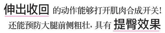 想要一直走路轻快,那么下半身的肌肉很重要。我们推荐女性做的是“原地冲刺”。它能有效锻炼大腿后侧的大块肌肉和臀部的臀大肌。这个部分即使练强大了,腿也不会粗。小笠原副教授说:“我听说模特的腿看起来修长就是练的绳肌。”